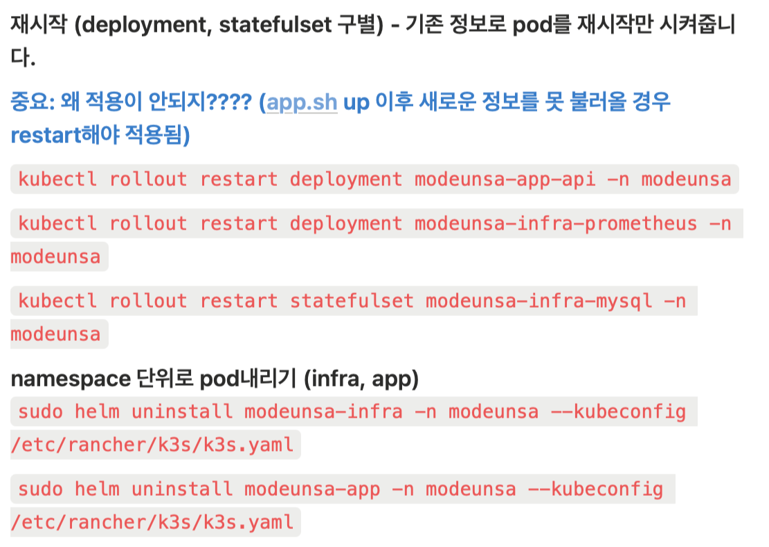 k3s 환경에서 실제로 자주 맞닥뜨리는 상황들을 명령어 모음으로 정리해 팀에 공유했습니다.